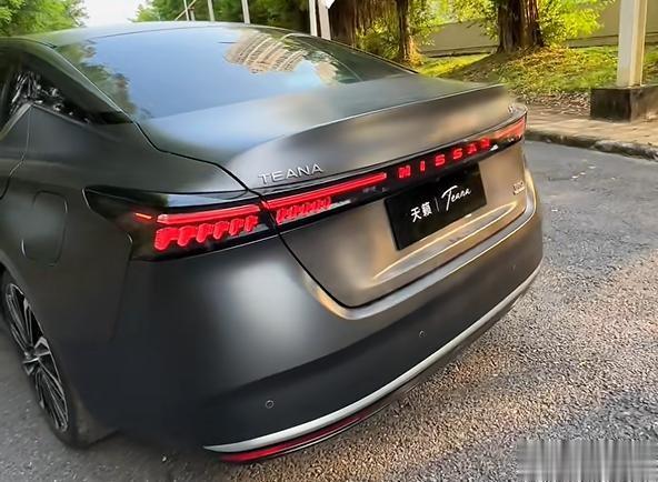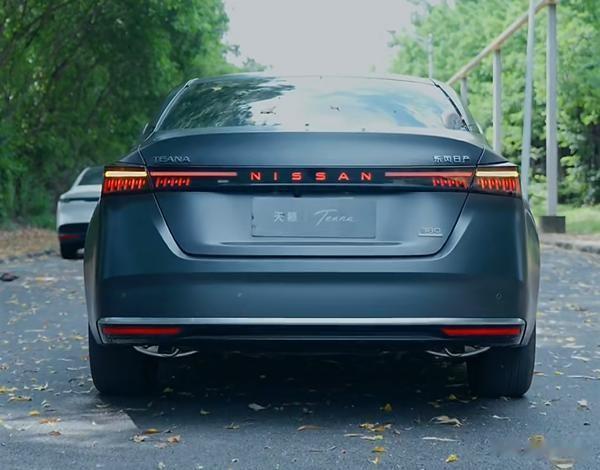 来到车尾,新款天籁PLUS的变化也非常明显,终于换上了经典的“TEANA”标识,现款“ALTIMA”其实对多数人来说还是比较陌生的。尾灯组变得更加科幻,贯穿式的设计,中间则是可以点亮的日产英文标识,两侧光源就像能量晶体一样非常漂亮。至于尺寸,目前并没有确切的数据,不过据悉车长可能增加到了4920mm,和现款4906mm比起来变化不算大。