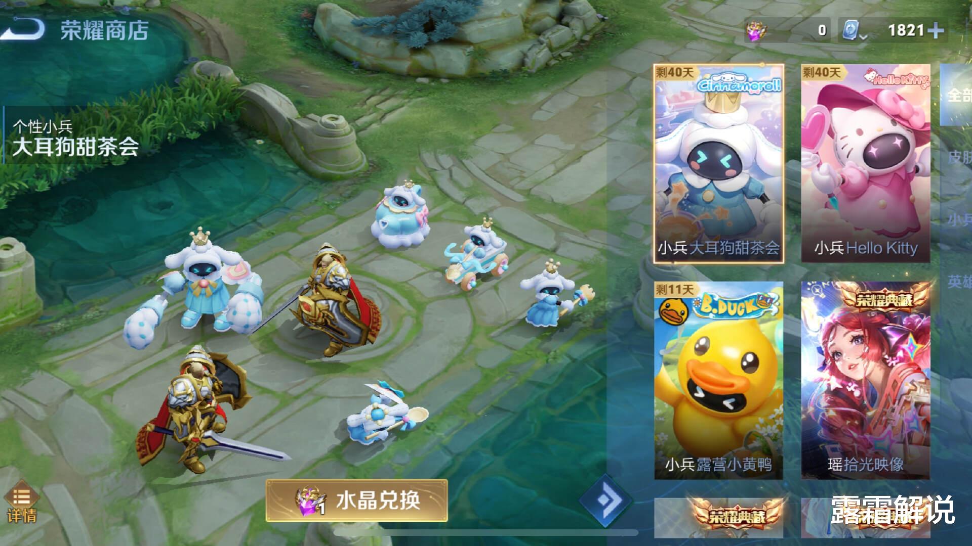 这次五五开黑节,王者荣耀又推出了一套新的小兵联动皮肤,这次联动的是三丽鸥的大耳狗。这款小兵皮肤,也是用一颗荣耀水晶兑换,并且也是限时上架。