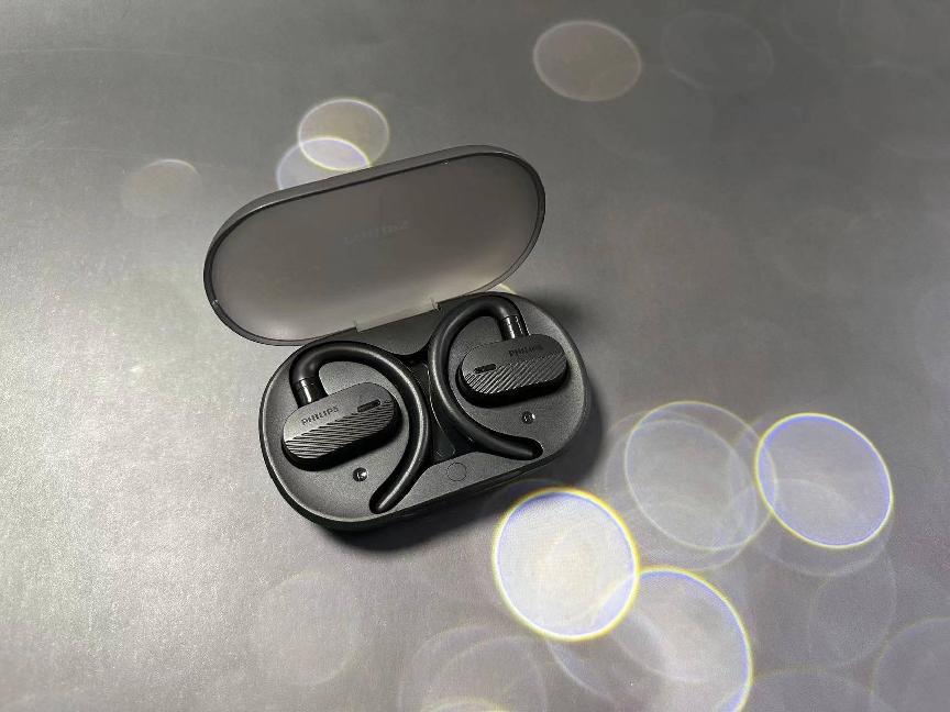 飞利浦 TAA6708 在设计上采用了棱角分明的外观风格,整体材质偏硬,手感较为坚固耐用,但也因此佩戴时舒适度有所折扣。耳机虽轻巧,重量约10克,但硬质材质加上棱角设计,让长时间佩戴感觉稍显僵硬,不太适合追求极致舒适感的用户。