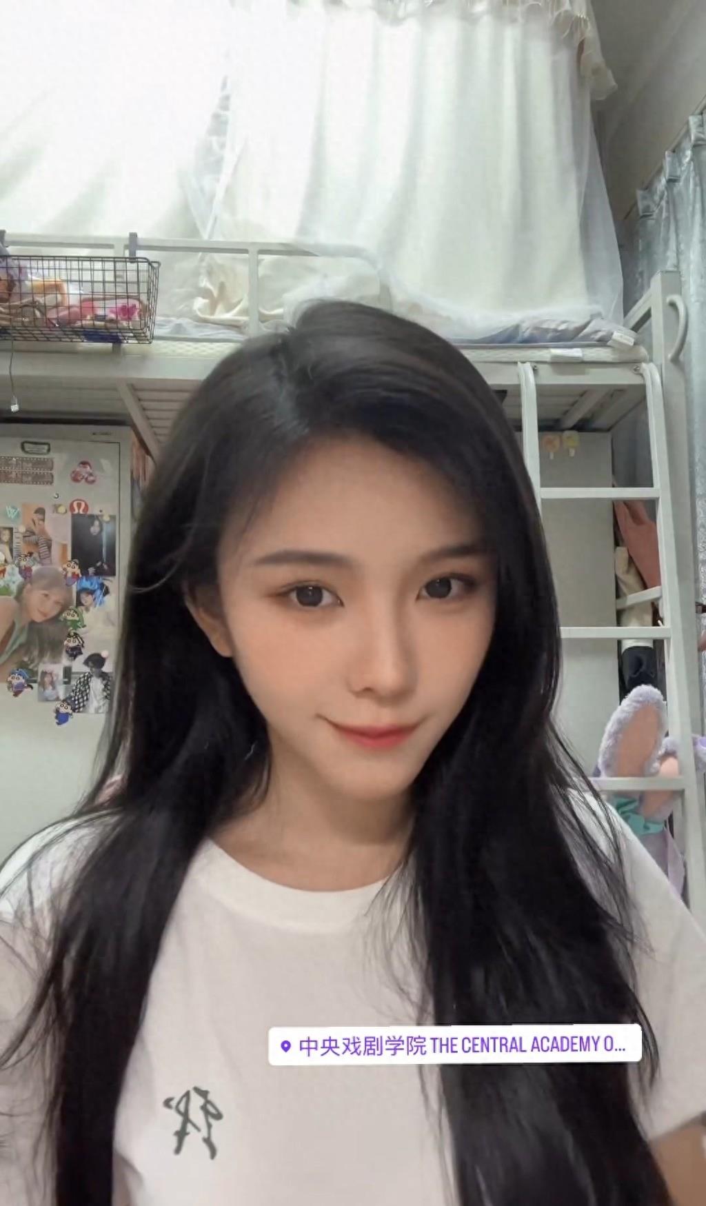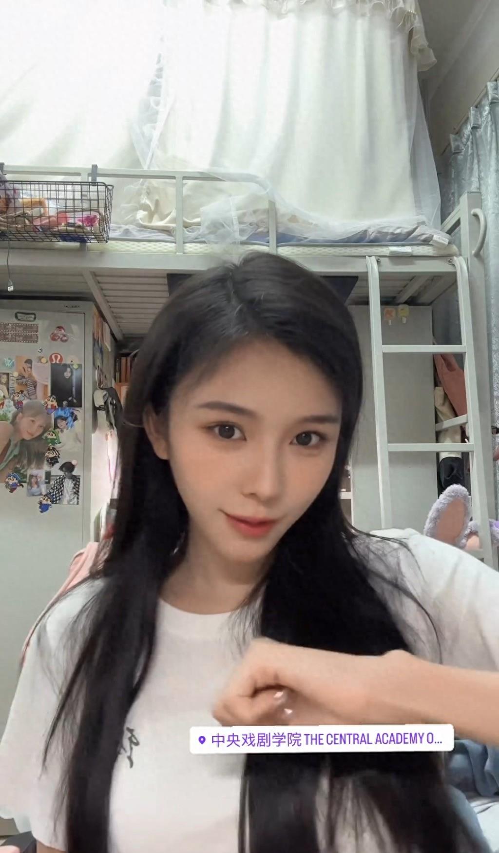 北京中央戏剧学院大二学生王敏慈昨日在社交网分享视频,看到她带上中央戏剧学院地标,面对镜头做出多个跳舞的动作,王敏慈的背后有一张双层床,上层拉上帘,而下层则看到很多写真海报照片,环境带点凌乱,估计是在宿舍拍摄。