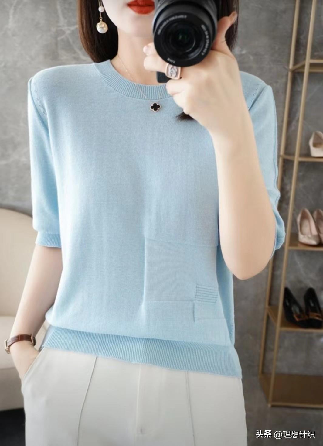 二.搭配方面:这样颜色的短袖也新颖,再搭配上白色的裤子,还有首饰,手表,项链就更让大家看上去眼前一亮的感觉了,显得更加美丽动人。其实不用特别刻意的去化妆,当然有应酬,或者参加一些活动除外。三.舒适度方面:现在天气变暖了,气温慢慢升起来了。在北方中午差不多到了20多度了, 我见到有的年轻人都穿上了短袖,慢慢的穿这款衣服的人越来越多了。现在还不是夏天,温度还没那么高,而且也不稳定,穿着这款纯棉线的衣服正合适。