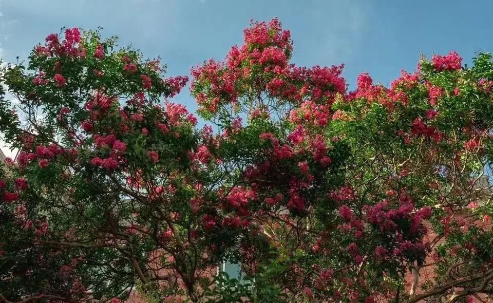 紫薇花,花期长,花色丰富,在炎炎夏日盛开,为庭院带来一抹亮色。它寓意“招财旺运、兴旺发达”,是庭院中常见的观赏树种。紫薇花树适应性强,南北皆宜,可地栽也可盆栽。