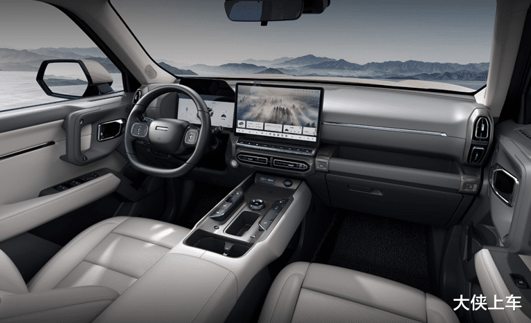 把目光转移到车内,哈弗大狗PLUS PHEV的座舱内饰,在保留越野安全把手等硬派特征的同时,还通过使用大面积的软质包覆来提升质感。同时,座舱设计也融入了国潮元素,比如在中控台位置采用的四水归堂副仪表台,以及花窗引风空调出风口和暗夜钢琴实体按键,使得整个中控台位置看着既大气又精致,让坐在车内的人完全感觉不到这是一款售价仅十几万的SUV!