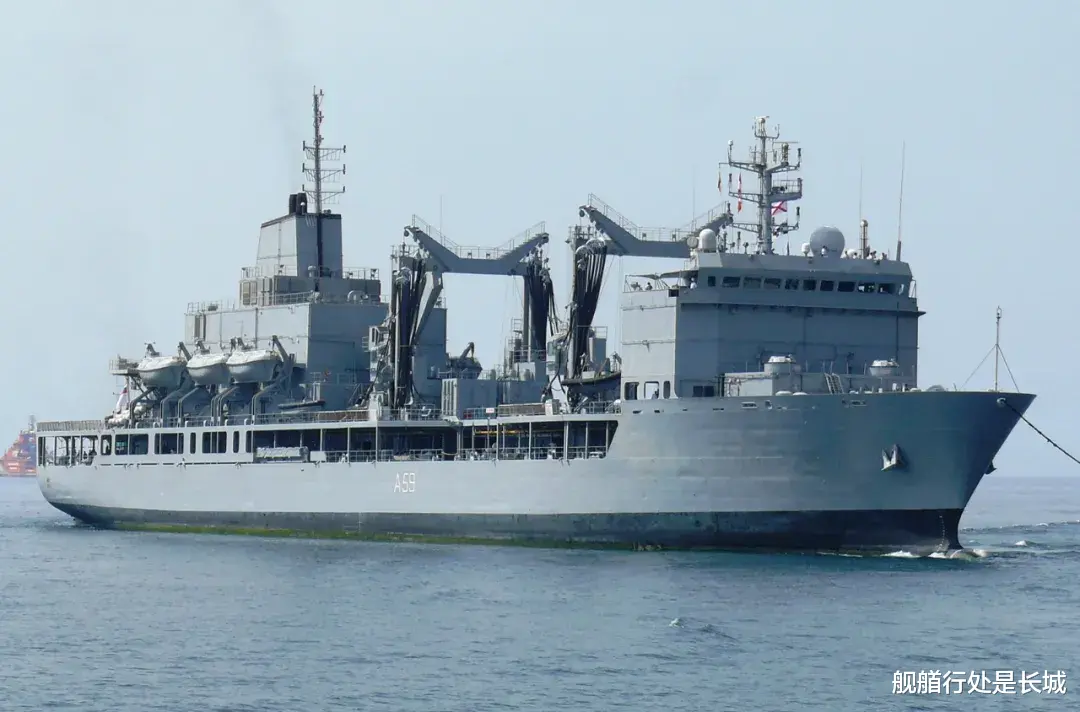 基于历史经验,印度海军致力于维护2艘航母,保持对周边国家的比较优势。在配套的补给舰方面,印度海军需求并不强烈,印度洋那么大,核心区就是印度东西两块。截至目前,印度保有A58、A59、A50、A57这4艘大型补给舰,其中A58乔迪号同南运953,1996年服役;A59阿迪特亚号为德制迪帕克级的改进型,2000年服役,印度自造。A50、A57为意大利制造,为新锐补给舰,是现在意、法新补给舰的原型。