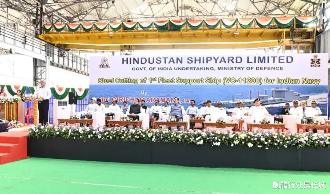 2024年4月10日,印度海军在维萨卡帕特南的印度斯坦造船厂举行首艘4万吨级补给舰切割钢板仪式,标志着印度海军最大型国产舰进入建造阶段。该级舰计划建造5艘,满载排水量在航母之上。