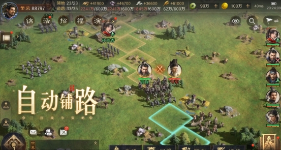 这游戏的自动化操作,真的是一大亮点。自动铺路、打城和政务委任功能,把那些重复性的操作都给省了。大家想想,以前玩SLG,每天要花大量时间去铺路、打城,忙得晕头转向。但在《三国:谋定天下》里,开启自动功能,就可以把这些事交给游戏,自己有更多时间去研究策略。很多玩家都说,自从玩了这游戏,再也不用为那些繁琐的操作烦恼了,能把更多精力放在怎么排兵布阵上。