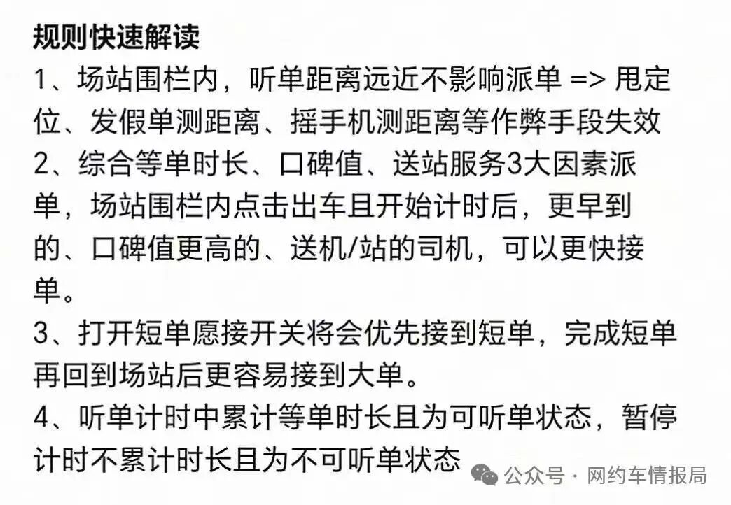 新规则的实施将有效打击使用高科技,以及甩定位、设置超级顺路、手机托管等作弊行为,提升派单的公平性,维护机场听单秩序。这对于那些遵守规则、老老实实接单的司机来说是一个利好消息。