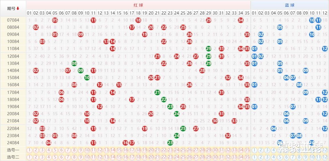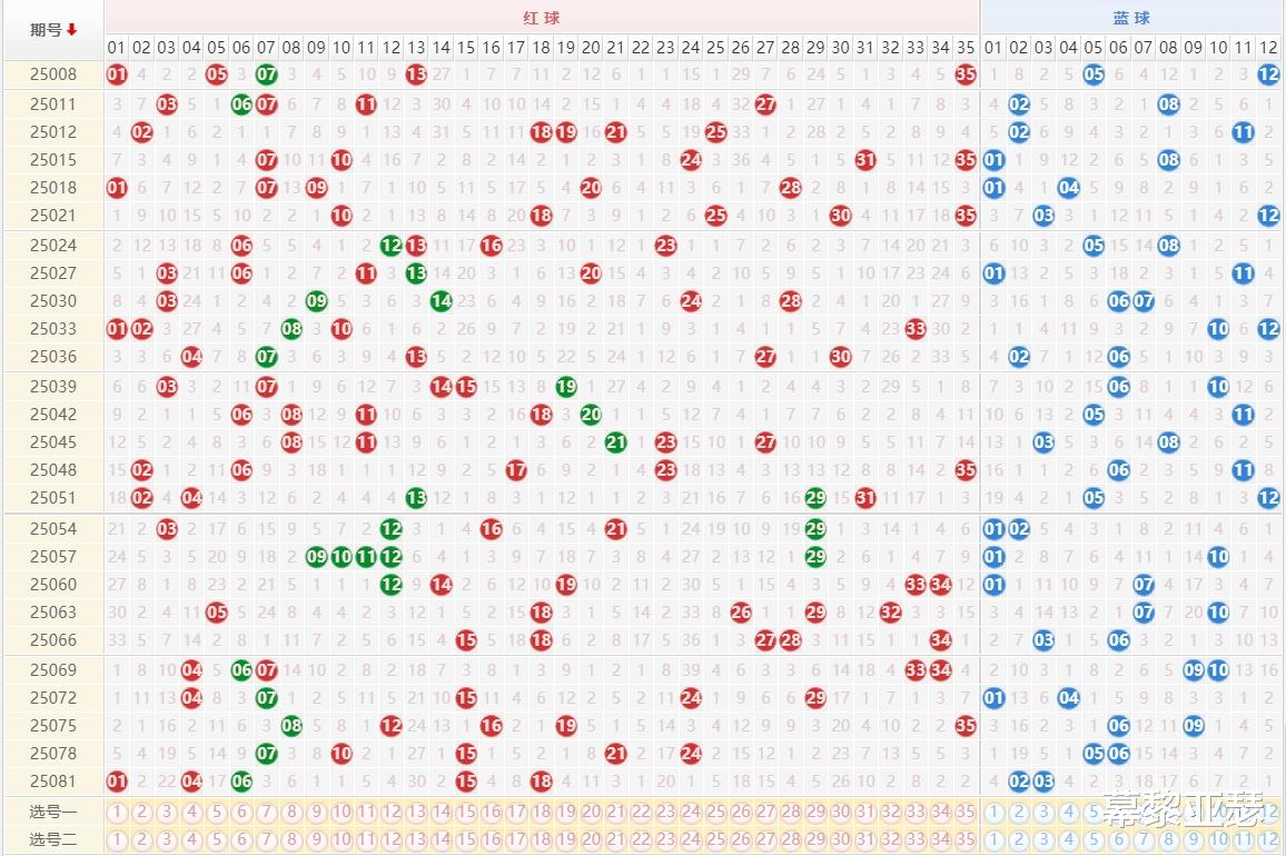 25083期大乐透自身出现两个重号:12(基本和历史),18(周三),本期预计重号个数:1个,从指向性看,本期无明显的重号红球,结合图形看,本期主要考虑红球:23