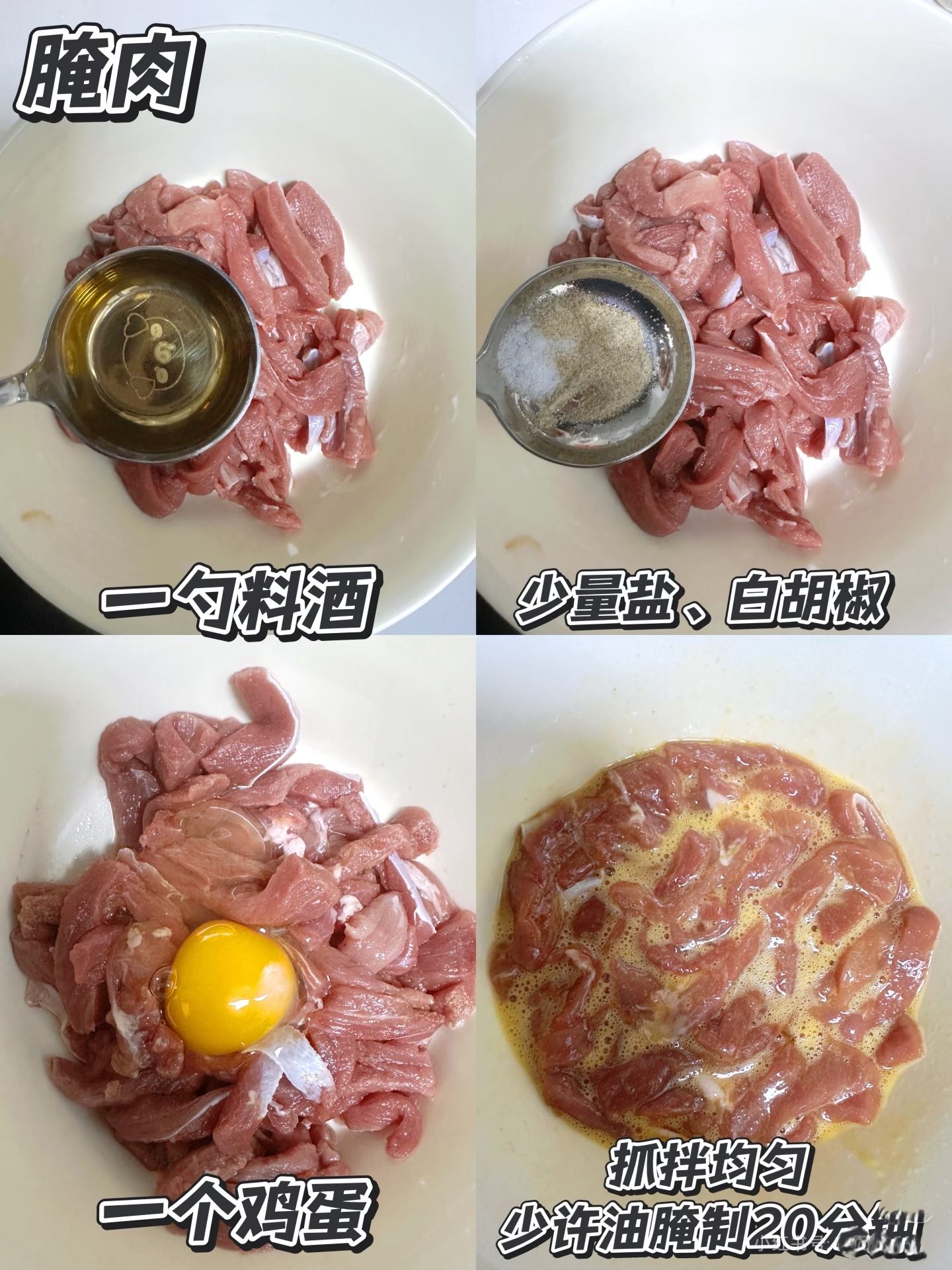 处理里脊肉是保证口感嫩滑的关键。将新鲜的里脊肉切成手指粗细的长条,这样既能保证炸制时受热均匀,又能在入口时获得饱满的肉感。接下来的腌制步骤绝对不能省:加入1勺料酒去腥,少许盐和白胡椒提味,再打入一个鸡蛋,用手抓拌均匀,让每一根肉条都充分吸收蛋液。最后淋上少许食用油,锁住肉条的水分,腌制20分钟。经过这样处理的肉条,炸出来后外酥里嫩,咬开时还能感受到肉汁的丰盈。