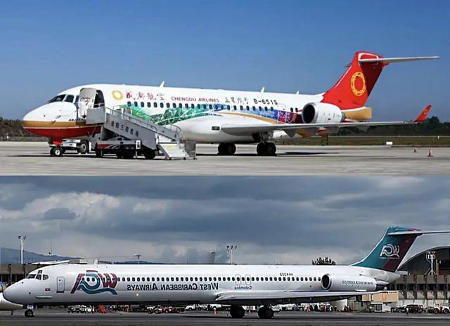 ARJ21支线客机(即C909)与麦道MD-80系列在机头、机身、尾翼、客舱尺寸及座椅布局上高度相似,尤其与MD-80系列中的DC-9-10型号极为相近。