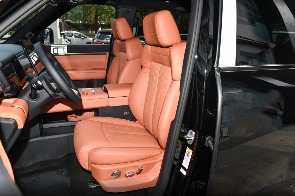虽说钛7看起来有些“凶悍”,但内心还是很“柔软”的,车内采用五座布局设计后尽可能保障每一位乘客的乘坐舒适度。首先,我们先来看看后备箱容积,常规容积970L,地台支持上下调节,以便满足用户在不同场景下的用车需求。将后排座椅放倒之后,几乎与后备箱形成了一个纯平空间,铺一张床垫就是一张临时双人床。第二排乘坐空间表现相当宽敞,即便一米九的大个坐进后排也能保持一个相对舒适的状态,相比于同级别那些采用六座或七座布局的车型来说,在车内乘坐舒适度方面确实更有优势,后排座椅标配加热通风,靠背支持角度可调。