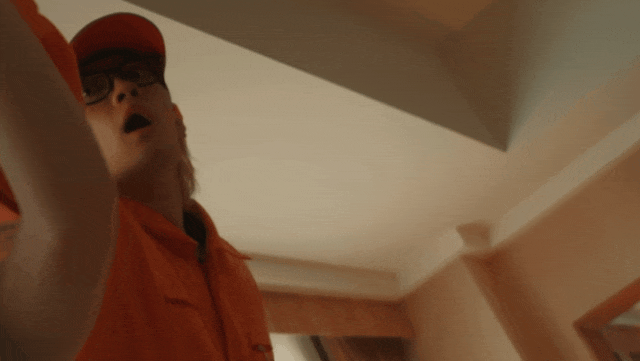 酒店走廊里,两名身穿橙色工装的男人推着清洁车,掩饰着鬼祟的行迹,悄无声息地潜入了一间客房。