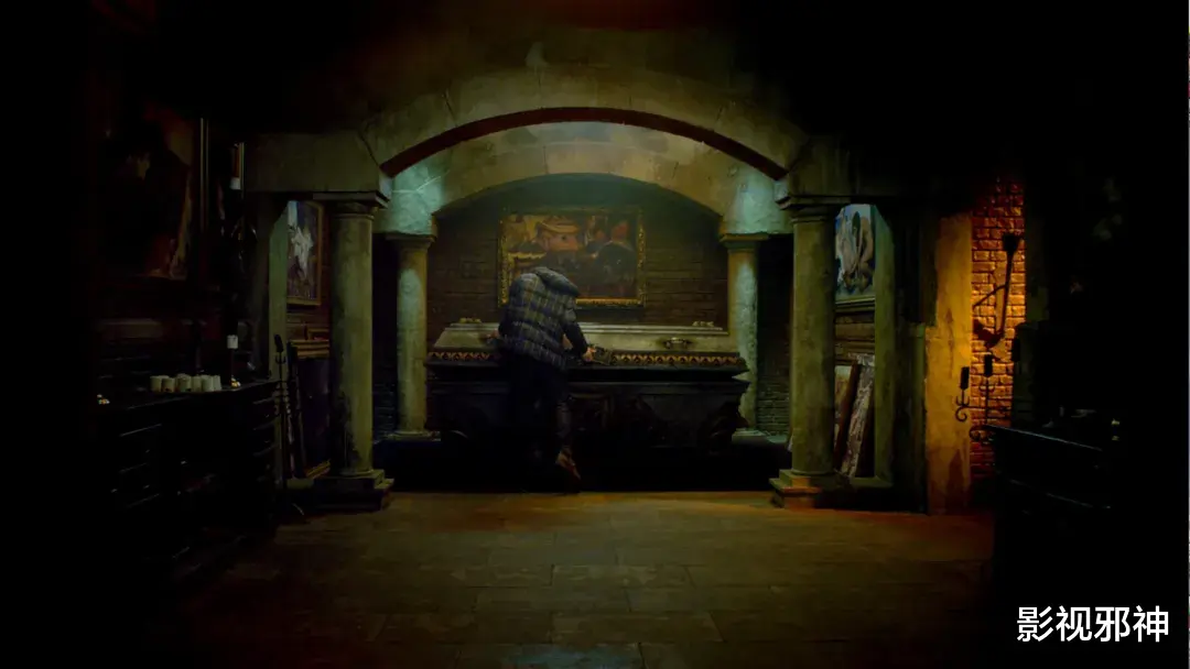 查理慌不择路,顺着蜿蜒的回廊不断向下,最后躲进了一副诡异的石棺里。