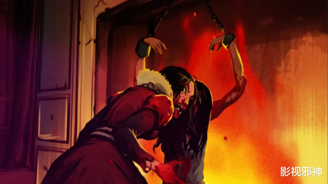之后,老者更是把少女悬吊于半空,放干她的血液制造出一个字面意义上真正的“血池”。