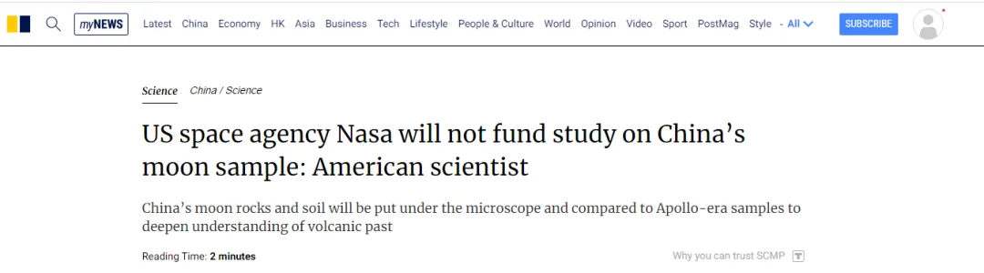 当然,这一篇报道的名称叫“美国宇航局(NASA)不会资助嫦娥五号样品研究”,这里面的内容信息才是关键,提到了关于嫦娥五号月壤的情况,这是怎么回事,下面详细看看。