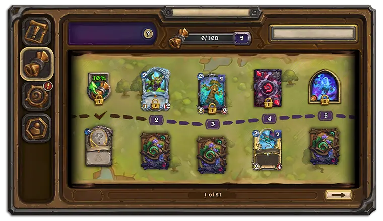 炉石传说新版本“漫游翡翠梦境”的预实装补丁将于明天上线,补丁的大部分内容,像平衡内容,以及退环境卡牌在之前就已经介绍过了,不过依然还有一些新的内容需要补充,比如正式公布了新版本的奖励路线和通行证内容。