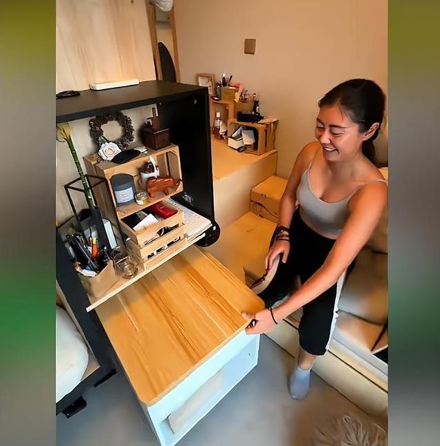 阿卡并没有觉得带外人进来会不好意思,她笑着说自己的房子只有15平方米,买下来总共花了将近400万,这么看来这个房子可以算得上是一个豪宅了。