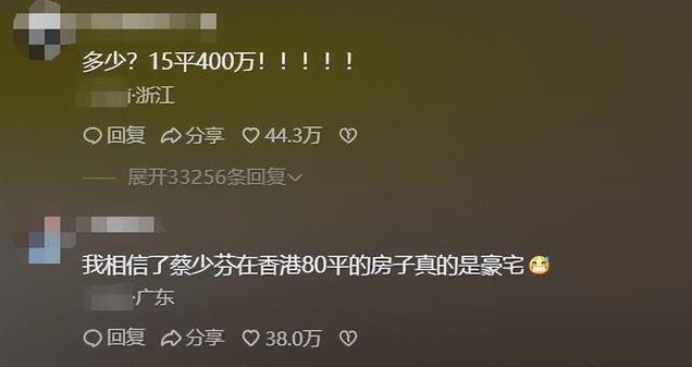 看到这样15平米的房子,在香港都能卖到将近400万,而且还是很难得的一个房子,网友们这才知道,蔡少芬在香港80平的房子,真的算是一个豪宅了。