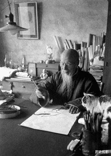 1952 年实拍:88 岁齐白石的画室日常,猫是他的 “御用监工”