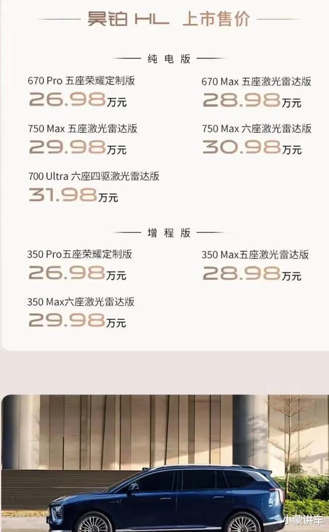 昊铂HL这次的定价,26.98万到31.98万,挺有诚意。