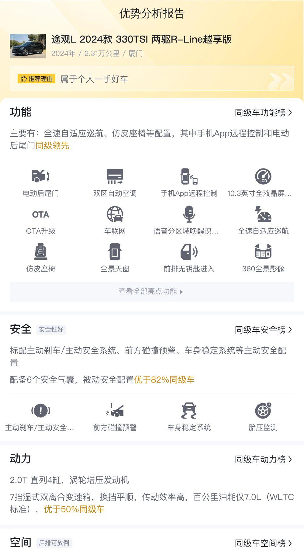 对于那些追求品牌和品质,又对价格比较敏感的消费者来说,这辆二手途观L或许是一个不错的选择。但如果你更注重新车的质保和售后服务,那么国产新SUV可能更适合你。