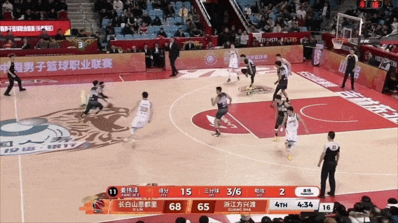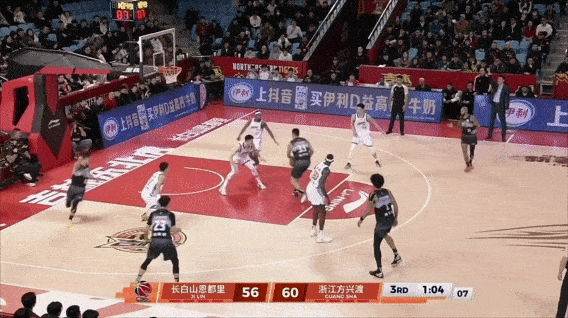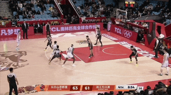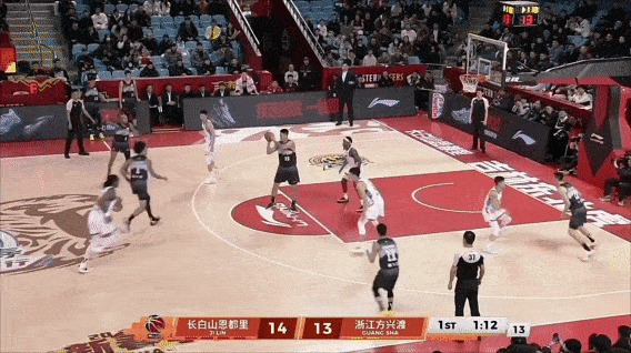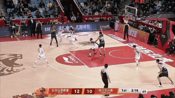 威尔逊高吊篮下,曾繁日错位卡住对手,轻松接球后上篮得分,浙江篮下三个人都挡不住曾繁日的大体格子