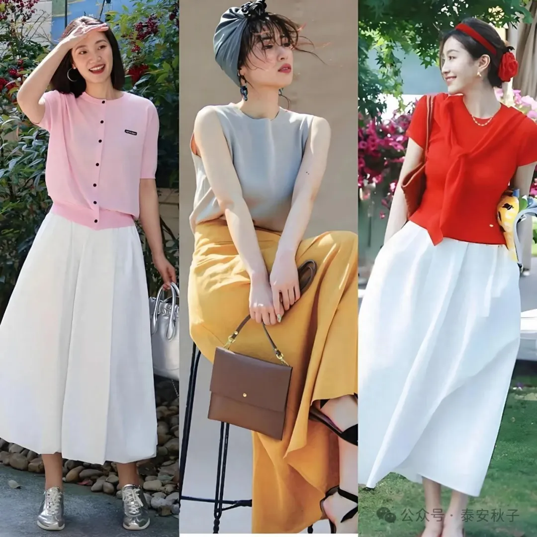 其实,在搭配裙子、或是其他衣服的时候,我们只要记住一个万能公式:全身颜色别超过三种,照着穿基本不会翻车!