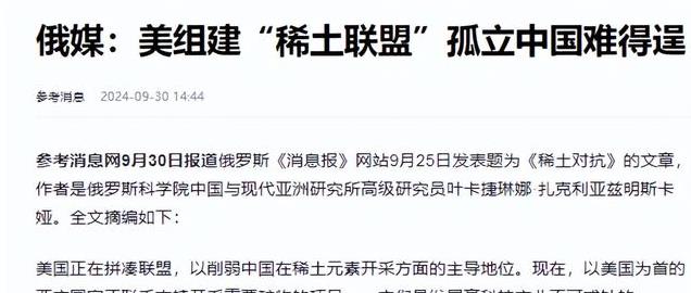 参考资料:俄媒:美组建“稀土联盟”孤立中国难得逞——参考消息