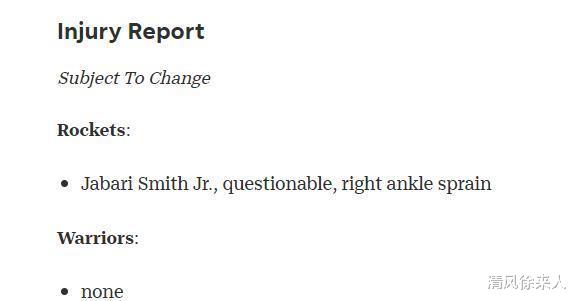 这场比赛,火箭队能否克服伤病困扰,在客场掀翻强大的勇士队?