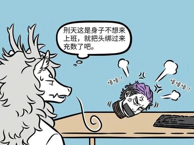 可以看出刑天的头也对工作深恶痛绝,而刑天为了顺利让头代替自己上班,不仅用胶带封住了自己的嘴巴,更是用绳子绑着,可以看出全身心都在抗拒上班