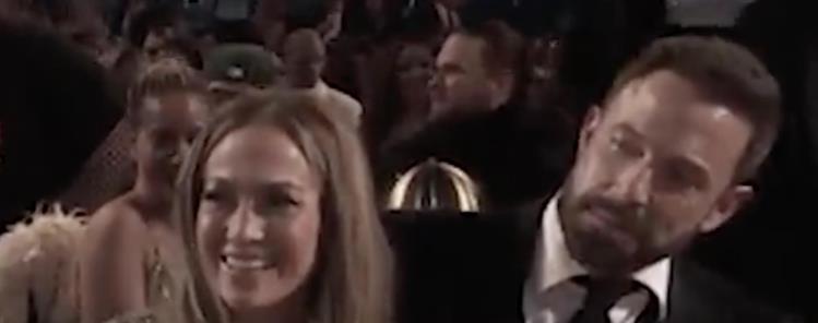 本·阿弗莱克(右)在葛莱美典礼坐在詹妮弗·洛佩兹旁边,眼神却显得空洞、没热情。