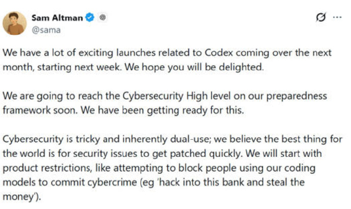 1月24日,OpenAI首席执行官山姆·奥尔特曼(Sam Altman)于X平台发布推文称,在未来1个月内,OpenAI将推出多个与Codex相关的产品,其中首款产品将于本周发布。