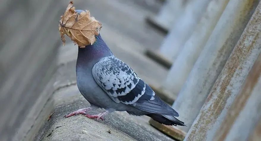 11.一片落叶正好飞到鸽子的脑袋上,整张脸都被挡住了,没办法就是这么巧。