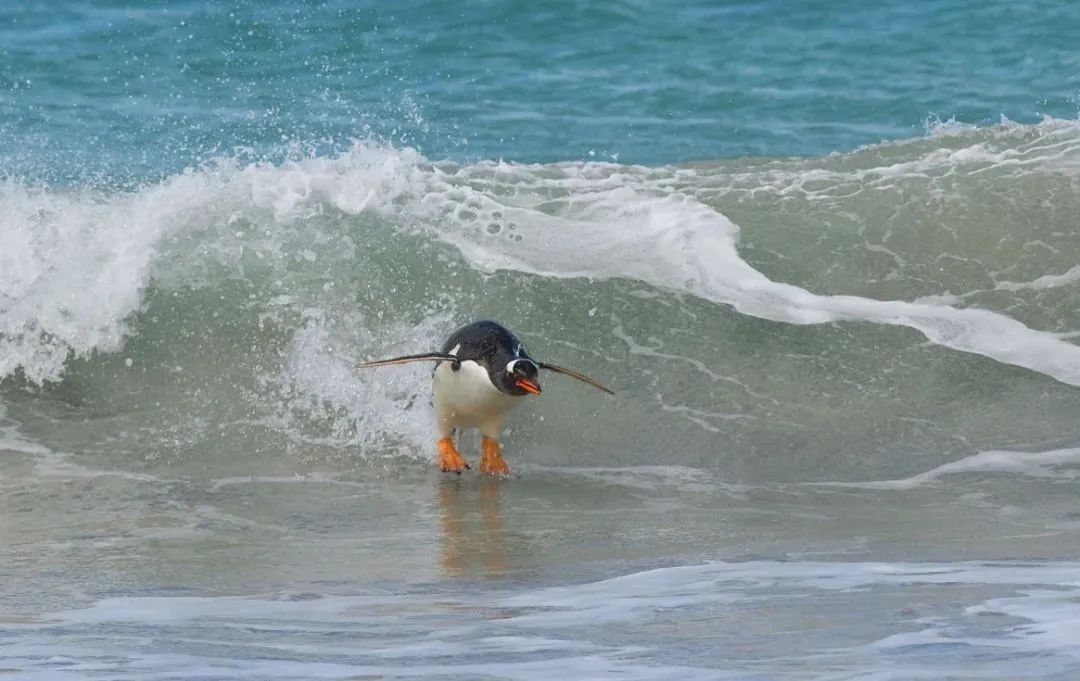 12.企鹅冲浪,比人类还要专业,看得我都想去玩水了。