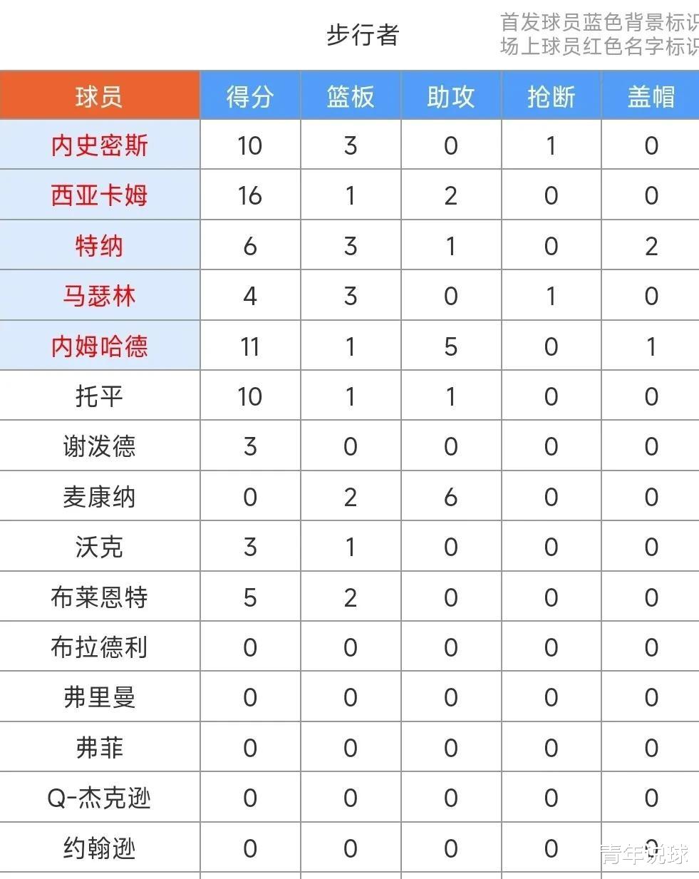 步行者队方面,内姆哈德,马瑟林,内史密斯,西亚卡姆和特纳组成了首发阵容。西亚卡姆的发挥尤其出色,单节砍下10分,为球队奠定了胜利的基础。虽然没有单一球员爆发出惊人的得分数据,但步行者队的多点开花,成为他们取胜的关键。