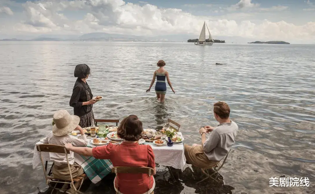 你有没有刷到过那张图:一家人把餐桌搬进大海里,阳光明媚、海水轻柔地荡漾着,几个孩子在旁边嬉笑打闹,画面治愈得像一场冥想。