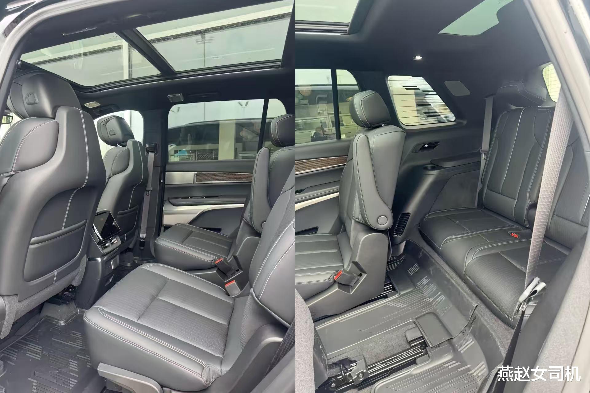 内饰也是家族化设计,环抱式的座舱内配备33英寸曲面双联屏,副仪表台处又增加了8英寸功能控制屏,再配合HUD,营造出满满的科技气息。此外还将配备双幅式多功能方向盘+电子怀挡、晶钻电控旋钮、氛围灯、23扬AKG音响+Dolby 7.1.4杜比全景声等,而内门板上还将配备座椅调节按键。车内采用2+2+2式的六座布局,同时还可以看到前全景天窗+后天幕、后排控制屏等配置。