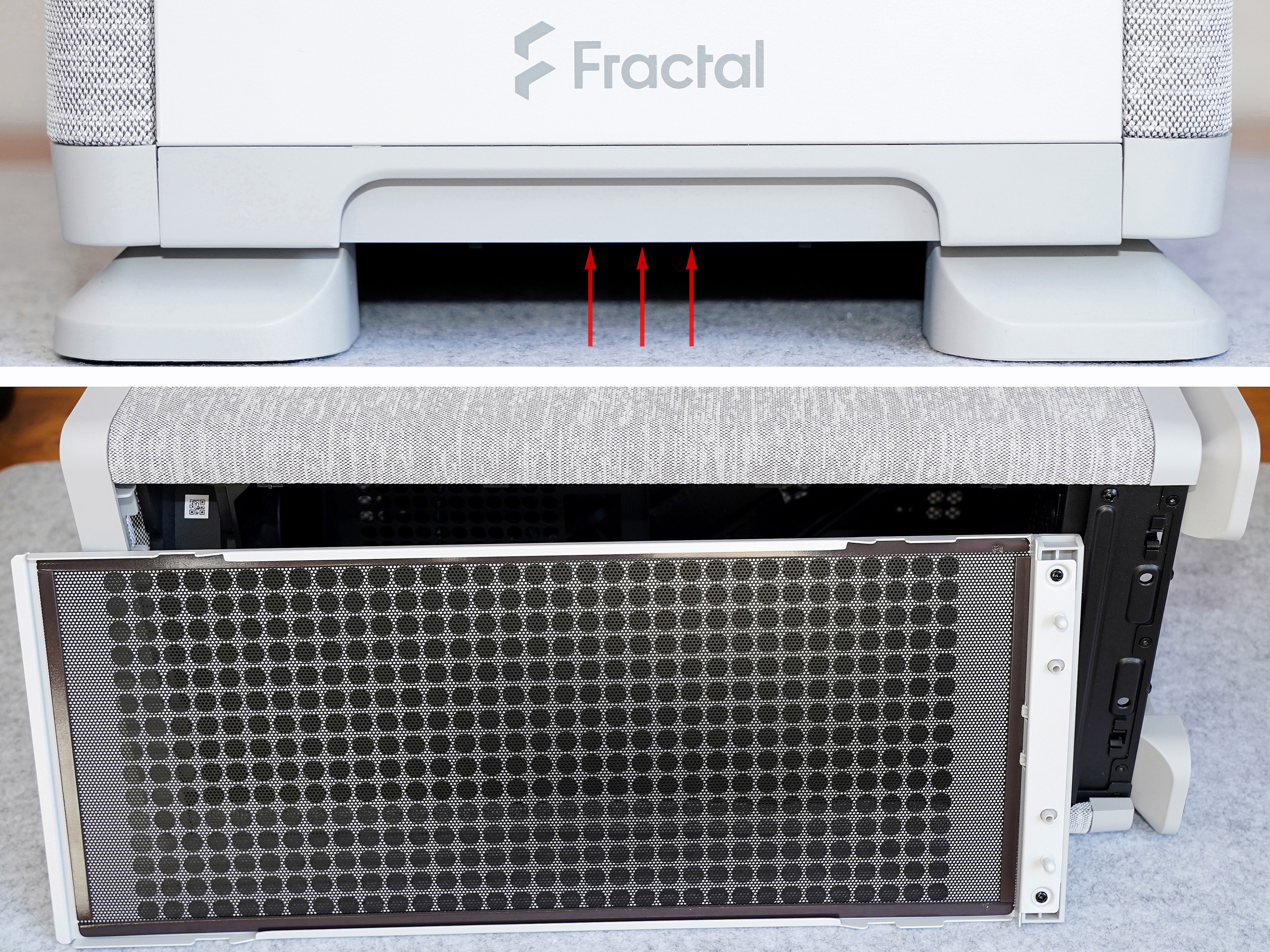 ▼金属板采用卡扣设计,一抬底部即可取下。大面积圆形开孔设计,确保进气量足够,另一面有磁吸式的防尘网,也不用担心进灰。