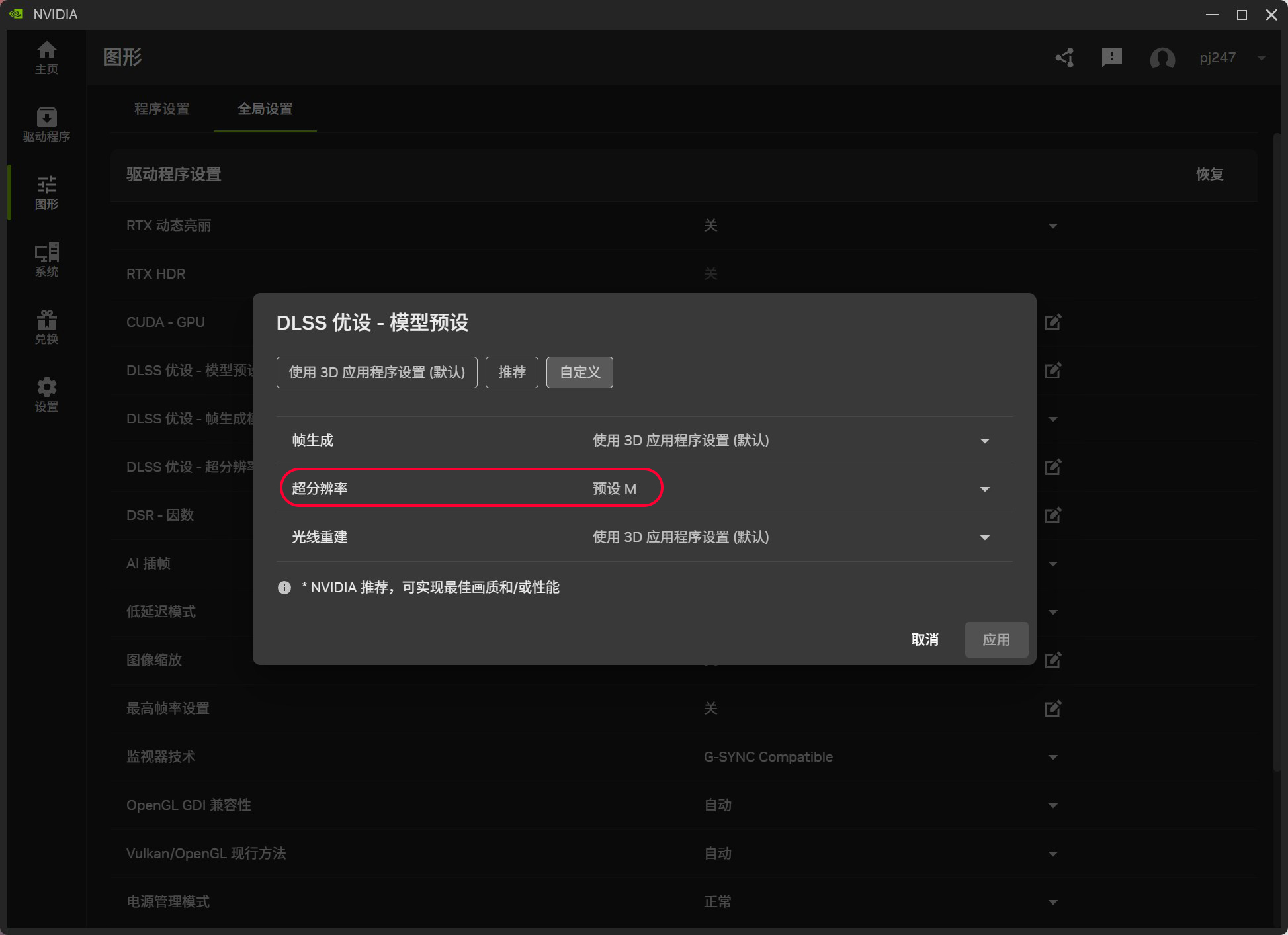由于不同游戏开启M预设和L预设的帧数降幅差异较大,现阶段建议不要用全局设置,还是对不同游戏单独设置比较好。