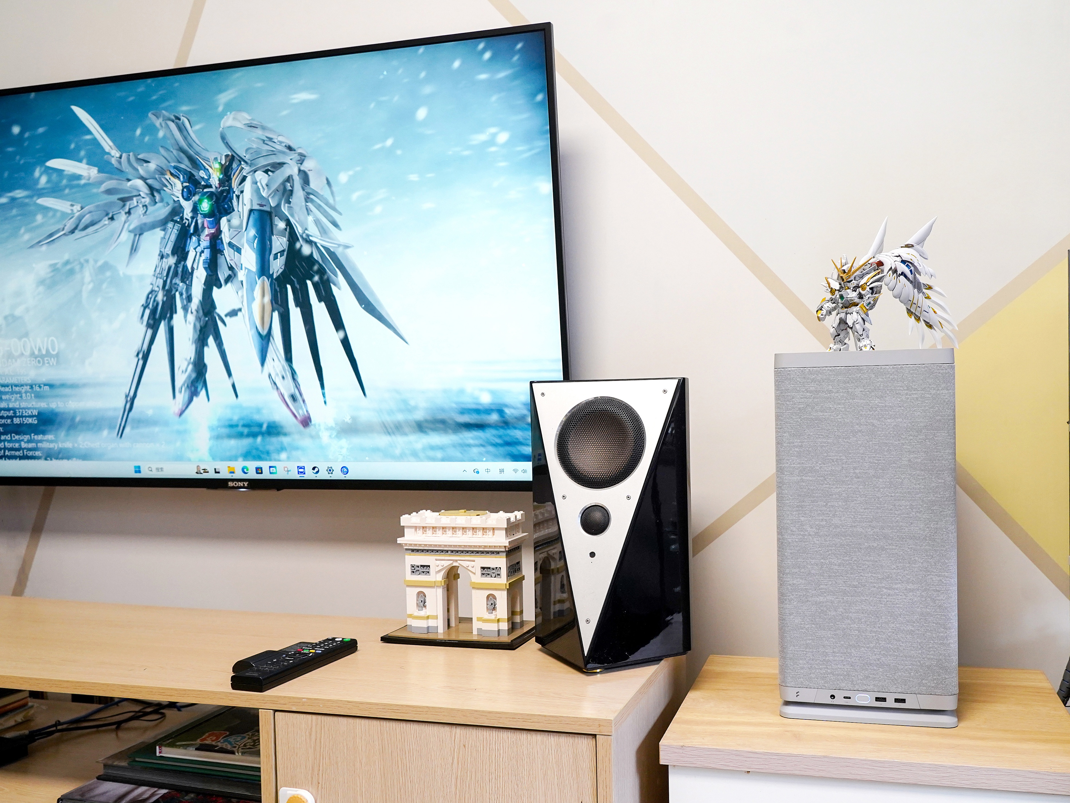 此外,Mood机箱的外观也非常特别!采用了大面积的布艺材质覆盖,看着就像一件现代居家风格的装饰品,放在电视旁边也很搭!