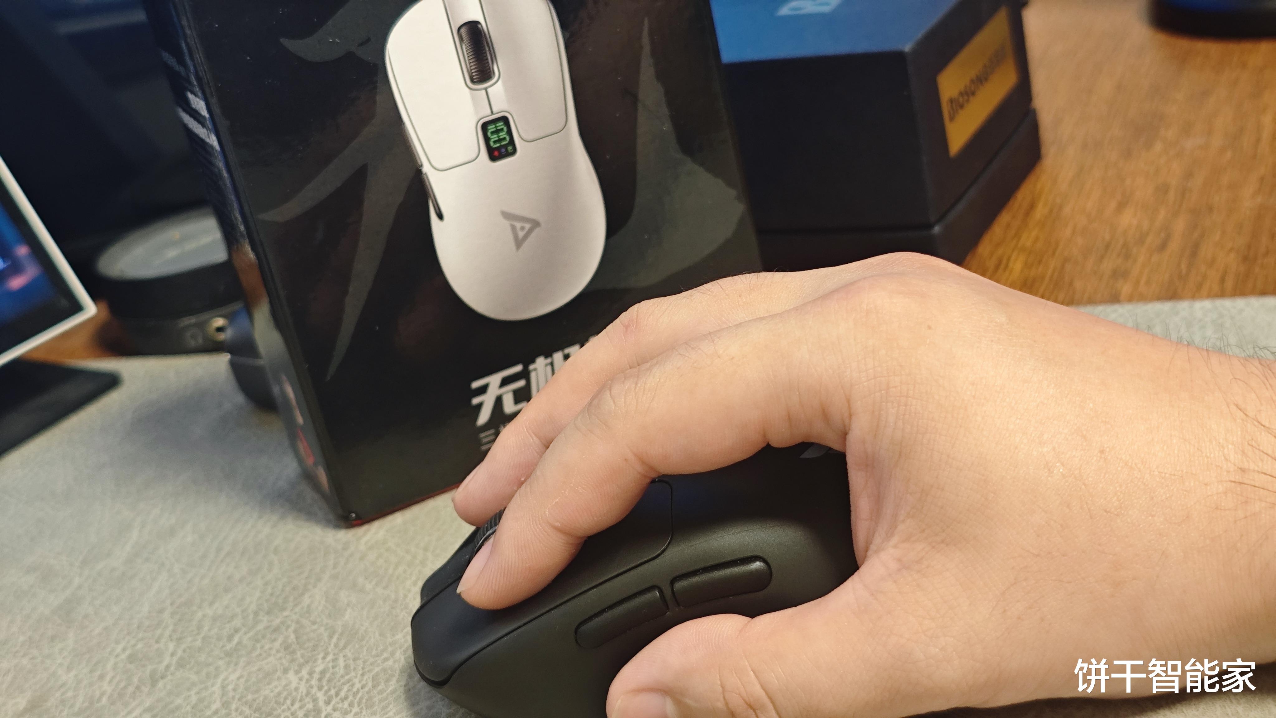 意外收获是办公体验,57g重量+低摩擦脚垫,表格拖拽丝滑省力。宏编程键被我设定为「Ctrl+C/V」,效率直接翻倍。静音滚轮深夜加班不扰人。
