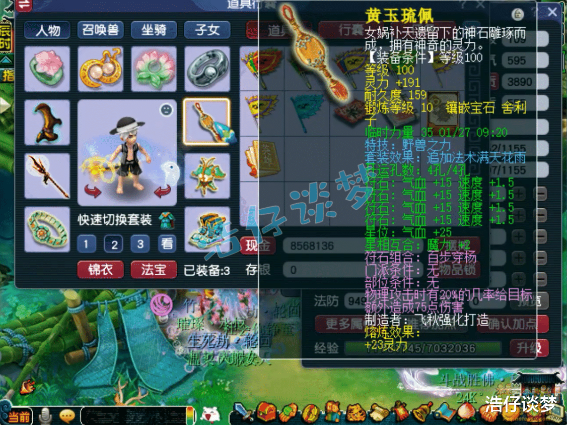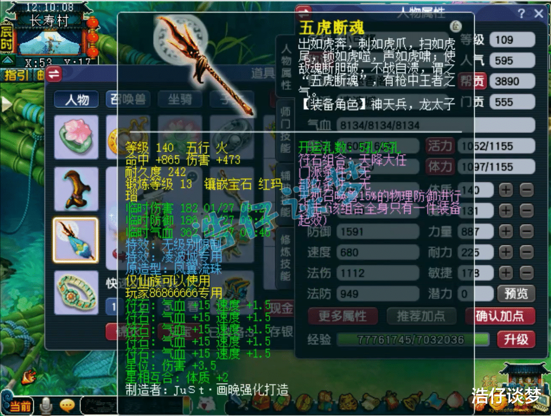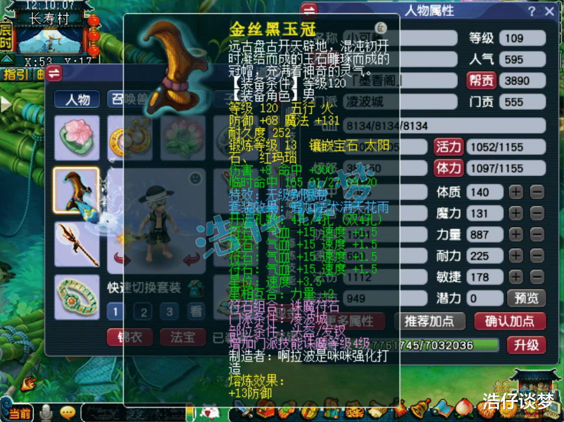 Hello大家好,我是浩仔!关注浩仔,每天给你带来最新梦幻西游游戏资讯!以下点评仅代表个人意见,不代表官方或平台立场。我发现最近玩凌波城的玩家是越来越多,无论是高端的PK号,还是普通的任务号,都能看到凌波城的身影。从目前我给大家展示的角色来看,好像展示最多的也是凌波城这个门派的角色。由此也可以看出,凌波城是真的吃香,高端赛事可以打三攻,也可以打212等阵容。普通任务挂机输出很暴力,难度任务点杀与面伤兼备。本篇文章浩仔要给大家展示的是一个109级的精品凌波城,无级别与百套装备混搭,PK任务两不误。