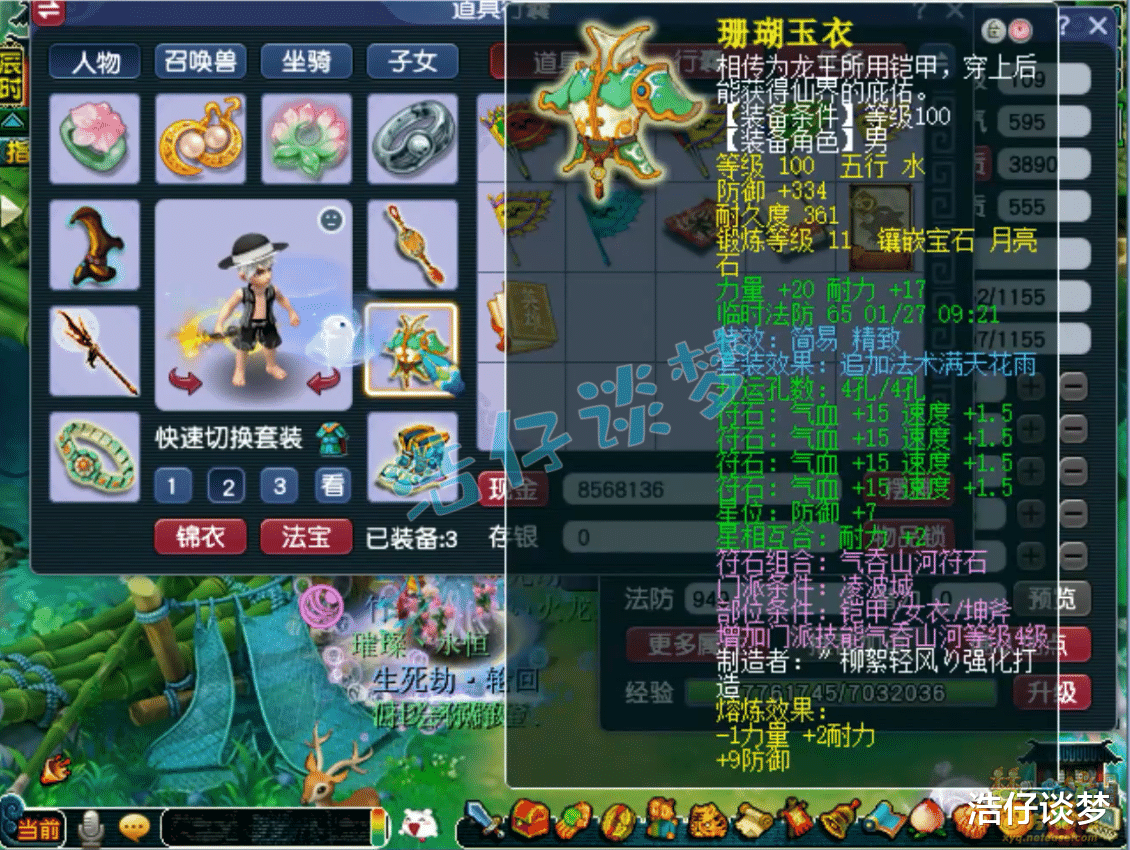 100级简易精致满天花雨套铠甲,熔炼后力耐双加38,打了11锻月亮石!