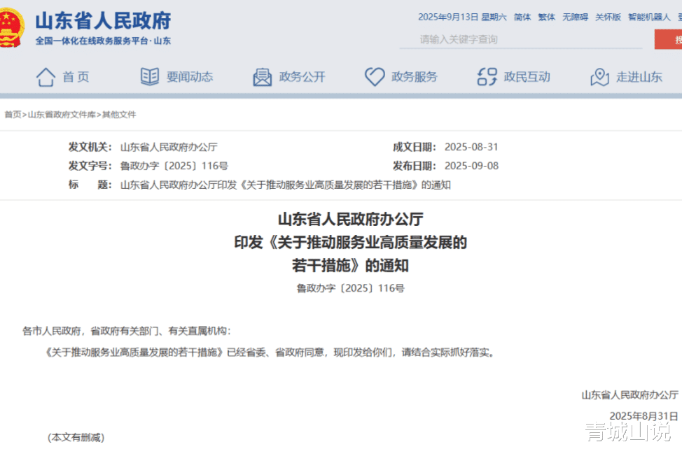 近日,山东省印发《关于推动服务业高质量发展的若干措施》: