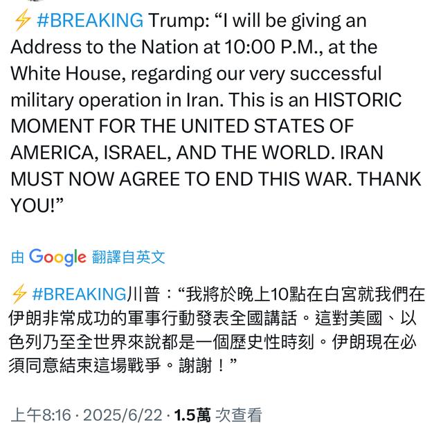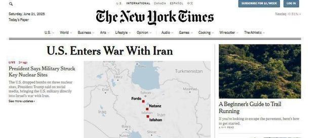 果不其然,就在6月22日凌晨,特朗普宣布,美军轰炸机对伊朗境内的三个核设施发起了突袭,又开始了他的“胜利之路”。