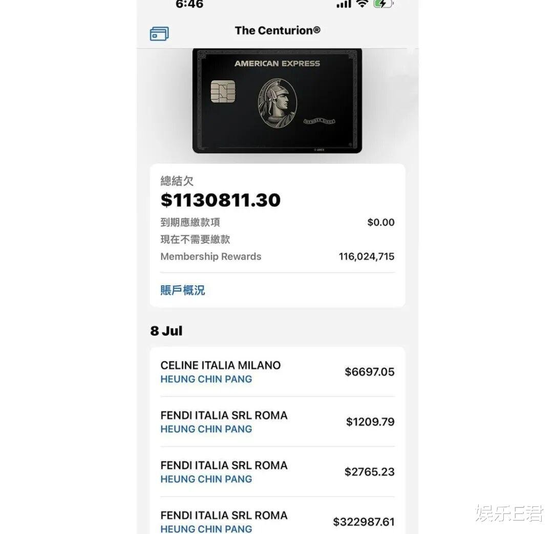 生怕网友不知道他有钱,他还专门晒出信用卡账单,显摆自己在意大利的高消费,这一趟下来已经花了100多万港币。