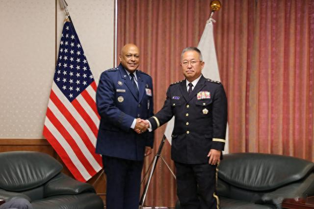 美国战略司令部司令安东尼·科顿空军上将(左)访问日韩
