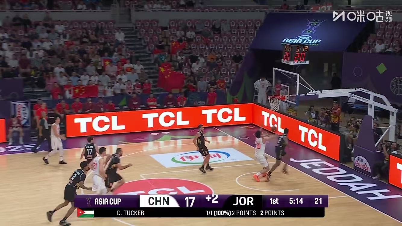 第二节开始,中国队换回首发阵容,约旦连得4分继续缩小分差,朱俊龙造塔克违体犯规两罚中一,王俊杰后仰中投打进稳住局势,胡金秋补篮打进,但约旦立马追身回敬三分,转换赵睿三分也稳稳回应,赵睿连续失误后约旦再次反击打成,双方分差回到5分中国队叫停,比赛继续胡明轩三分命中止血,赵睿三分再中分差回到两位数,半场结束中国47-38约旦领先9分。