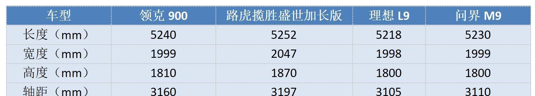 领克900被大家叫做“杭州湾揽胜”,主要是因为它车子大,看起来特别震撼。这款大型SUV,车身有5240mm长、1999mm宽、1810mm高,轴距足足3160mm,快赶上路虎揽胜盛世加长版的大小了。跟理想L9、问界M9比起来,领克900在尺寸上还有点小优势呢。