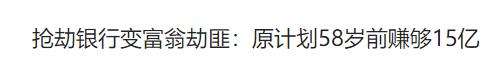 人民网:2015年10月29日《抢劫银行变富翁劫匪:原计划58岁前赚够15亿》